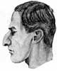 muy larga, y con una larga y más o menos inclinada nariz, siendo