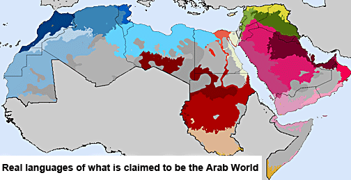 As a result of the spread of Islam (which incidentally did NOT occur in a vacuum) more that 4.5 million square miles of Africa and Asia became "Arabic-speaking". However, the equivocal character of the expression "Arabic-speaking" itself, adds further ambiguity to the word "Arab" today, which refers merely to the fabricated community of a FORMAL language. Consequently, if the word "Arab" is used as a criterion of unity (based on this imagined community of language), then the expression itself carries perforce the seed of its own destruction since "Arabic" has been suffering from aphasia for over a 1000 years and has seized being a spoken language since the end of the Abbasid era. This begs a simple illustration: