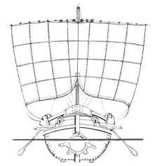 Merchant ships had, commonly, small boats attached to them, which afforded a chance of safety if the ship foundered, and were useful when cargoes had to be landed on a shelving shore.11 We have no means of knowing whether these boats were hoisted up on deck until they were wanted, or attached to the ships by ropes and towed after them; but the latter arrangement is the more probable.