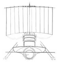 From this rude shape the transition was not very difficult to the bark represented in the sculptures of Sargon,3 which is probably a Phoenician one. Here four rowers, standing to their oars, impel a vessel having for prow the head of a horse and for stern the tail of a fish, both of them rising high above the water. The oars are curved, like golf or hockey-sticks, and are worked from the gunwale of the bark, though there is no indication of rowlocks. The vessel is without a rudder; but it has a mast, supported by two ropes which are fastened to the head and stern. The mast has neither sail nor yard attached to it, but is crowned by what is called a "crow's nest"--a bell-shaped receptacle, from which a slinger or archer might discharge missiles against an enemy.4